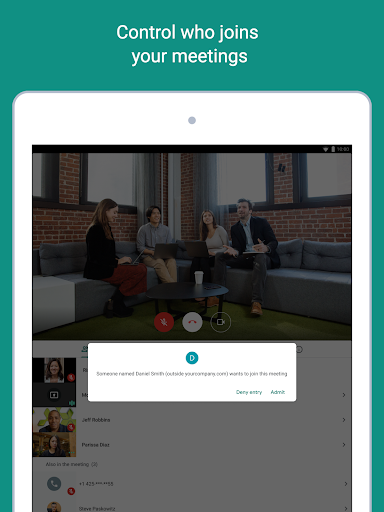 Key features: • Host unlimited high-definition video meetings • Meet safely - video meetings are encrypted in transit and proactive anti-abuse measures help keep your meetings safe • Easy access − just share a link and invited guests can join with one click from a desktop web browser or the Google Meet mobile app • Share your screen to present documents, slides, and more • Follow along with real-time captions powered by Google speech-to-text technology