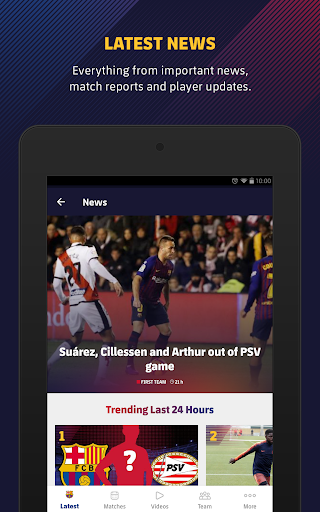 ● Learn more about the team and the players with the social media section, updated with the official feeds of FC Barcelona, Messi and more.