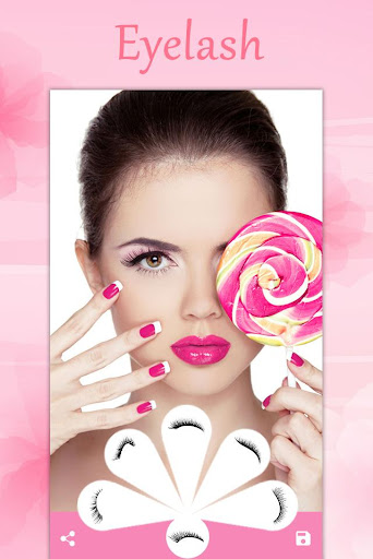 Change the Eye lashes from wide range of Eye Lashes for Eye Makeup.Different eye colors to pop up your photos with mascara and you can add a Flag eyes !