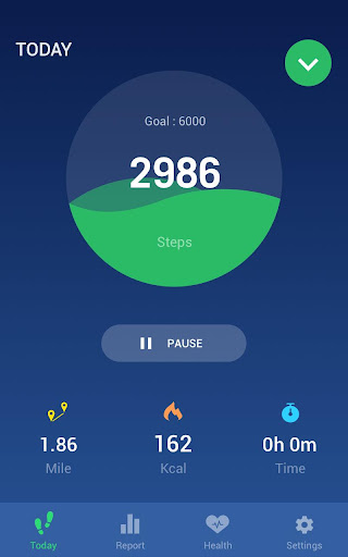 Start, Pause and Reset You can pause and start step counting at any time to save power. The app will stop background-refreshing statistics once you pause it. And you can reset today’s step count and count step from 0 if you want to.