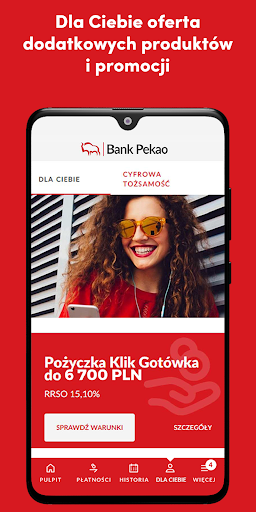 With the PeoPay application you have quick and convenient access to your products at Bank Pekao S.A., you can pay bills, pay for purchases, withdraw cash with BLIK, and even take a loan.