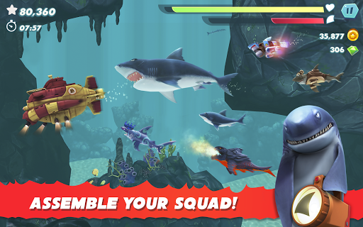 In this action-packed aquatic adventure you can: • Unlock more than a dozen unique sharks and other fintastic creatures • Explore an open world both above and below the waves • Enjoy jawsome 3D graphics and sound effects • Discover and devour mysterious creatures of the deep • Recruit Baby Sharks to boost your predatory powers • Equip awesome accessories like Lasers, Jetpacks and Top Hats! • Find and collect sunken Bonus Objects • Sink your teeth into loads of challenging missions • Activate Gold Rush to survive longer and score higher • Take part in regular in-game events and win limited edition prizes • Attack with intuitive touch or tilt controls • Play offline wherever you are – no Wi-Fi needed! • Synchronize your game easily across Android devices