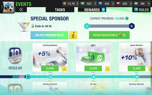 From Special Sponsor Events to daily gifts, there are so many awesome rewards to grab with everything you do! Pick them up when you lead your team on the road to soccer trophies!